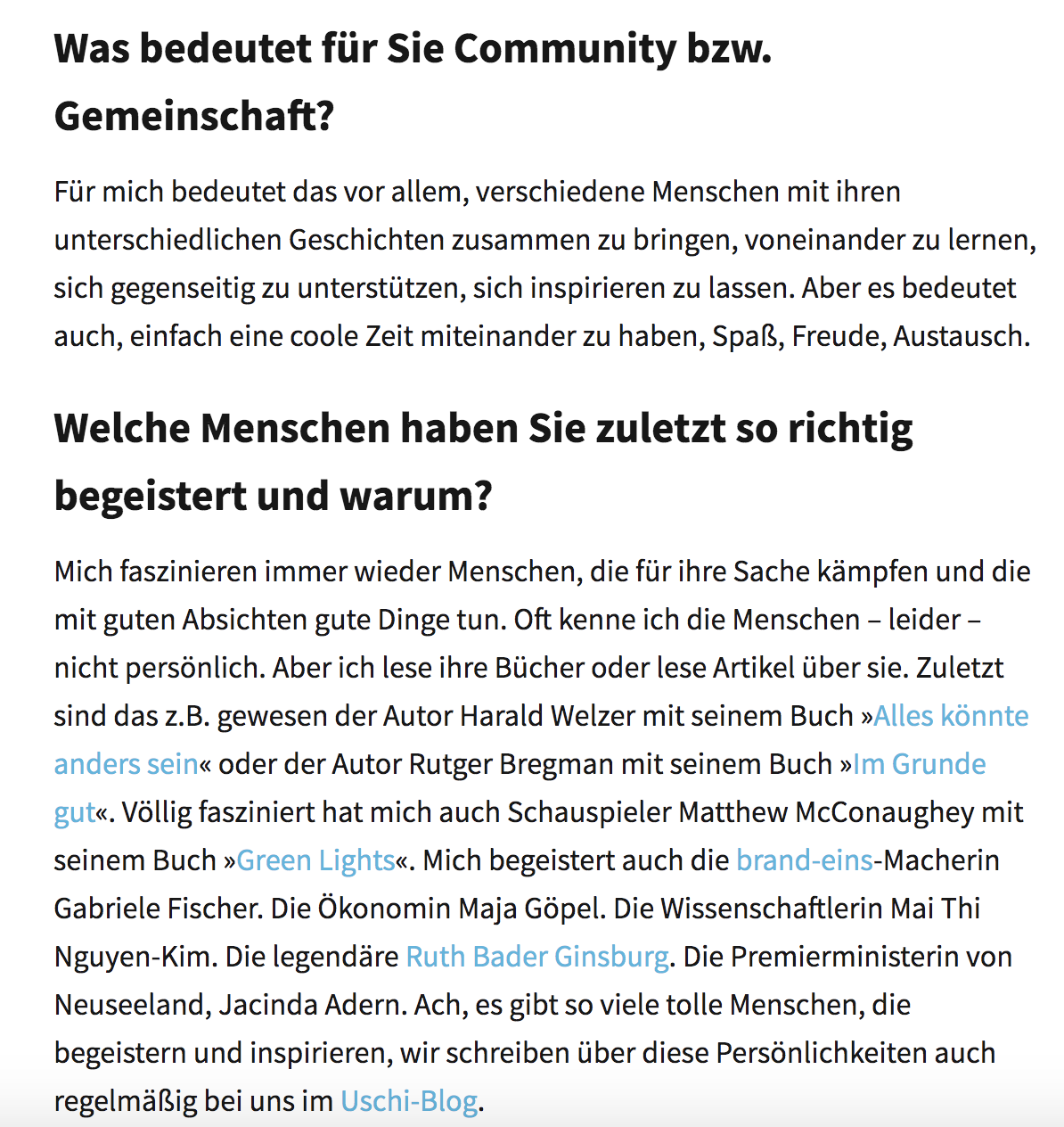 Leander Wattig betreibt eine Plattform für Community-Marketing und interviewt dort immer wieder spannende Persönlichkeiten und befragt sie zu den Themen Community-Marketing und Netzwerken. Auch wir bei den Uschis lieben es, Menschen zusammen zu bringen, ob bei unseren Events oder auch online. Was unser Ansatz dabei ist und worum es uns beim Networking geht, das hat GUK-Gründerin Henriette Frädrich im Interview verraten.