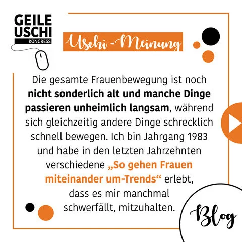 Die gesamte Frauenbewegung ist noch nicht sonderlich alt und manche Dinge passieren unheimlich langsam, während sich gleichzeitig andere Dinge schrecklich schnell bewegen. Ich bin Jahrgang 1983 und habe in den letzten Jahrzehnten verschiedene „So gehen Frauen miteinander um-Trends“ erlebt, dass es mir manchmal schwerfällt, mitzuhalten. Manchmal muss ich mich auch einfach vor Scham schütteln. In den 90ern, als Teenie, war ich ein großer Spice Girls Fan und trug GIRL POWER T-Shirts, träumte von unzerstörbaren Frauenfreundschaften wie bei Ginger Spice & Co. oder TikTakToe, nur um dann durch diverse Pressekonferenzen enttäuscht zu werden. Ich liebe die Spice Girls dennoch nach wie vor.