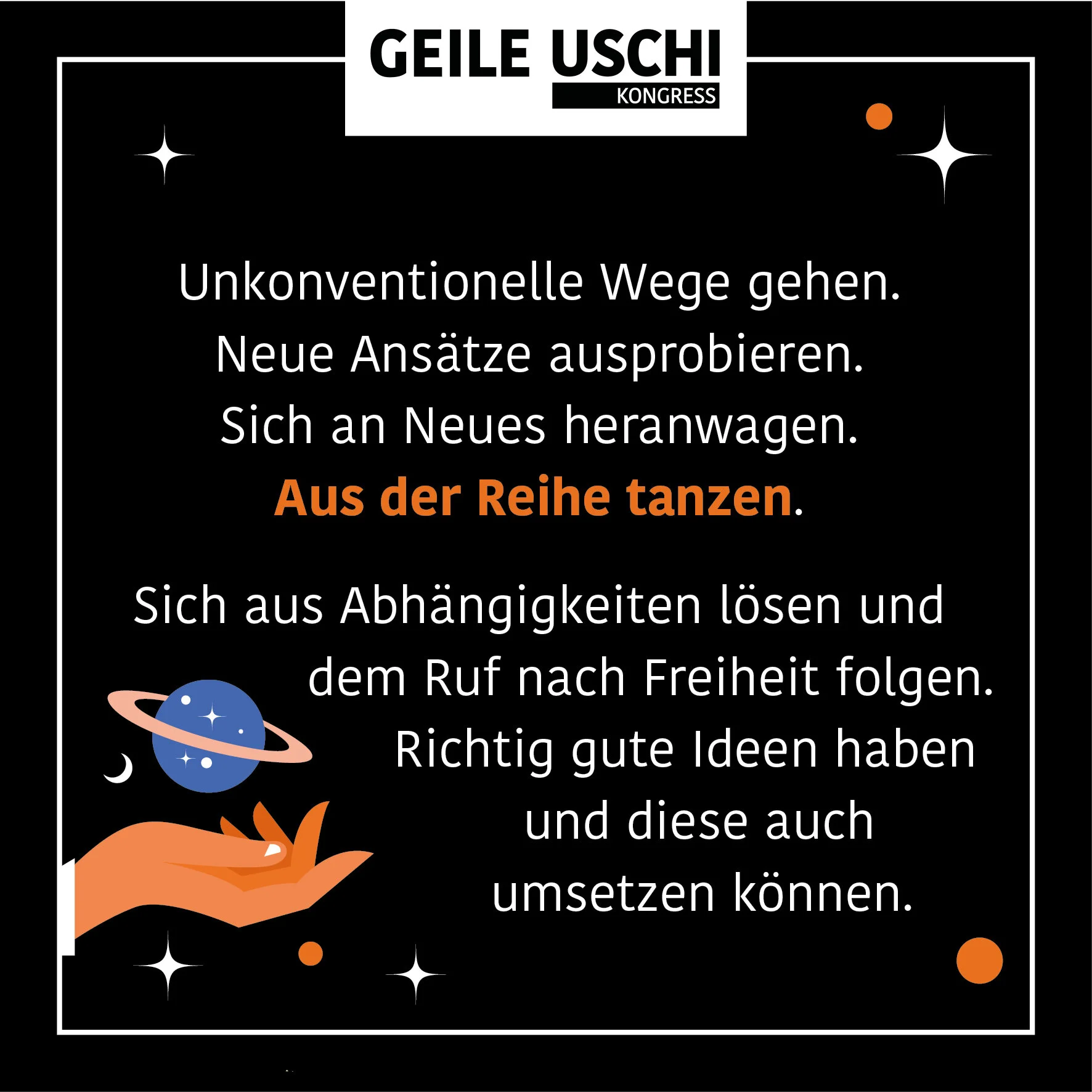 Deine Zukunft entsteht aus dem, was du JETZT tust. Lasst uns auch in 2021 wilde, freche, mutige, unkonventionelle geile Uschis sein!